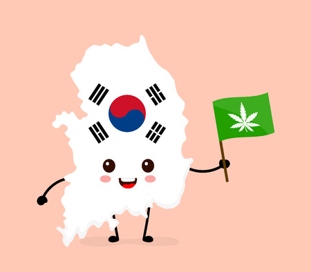 かわいい幸せな面白い韓国地図と国旗のキャラクター プレミアムベクター